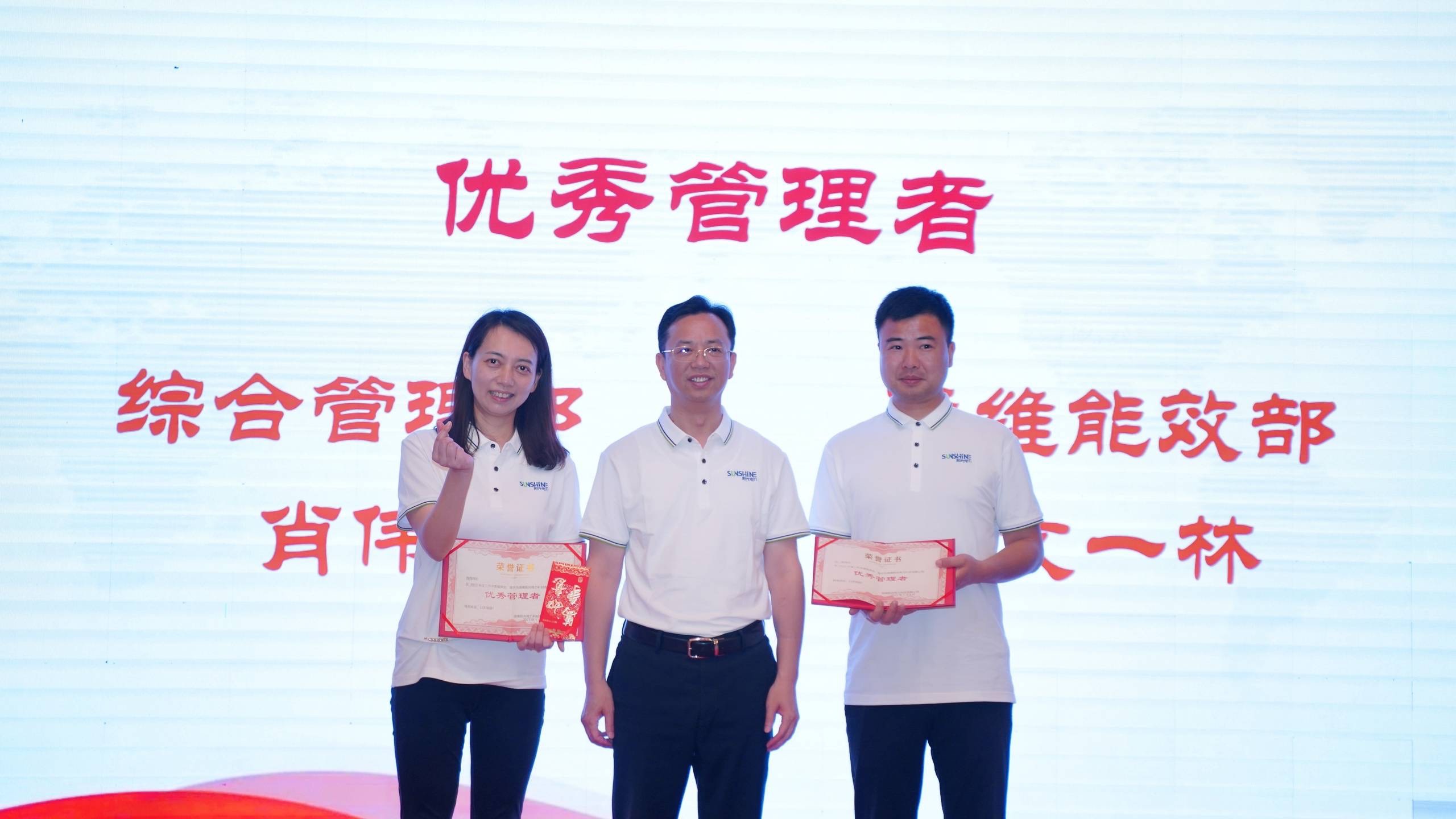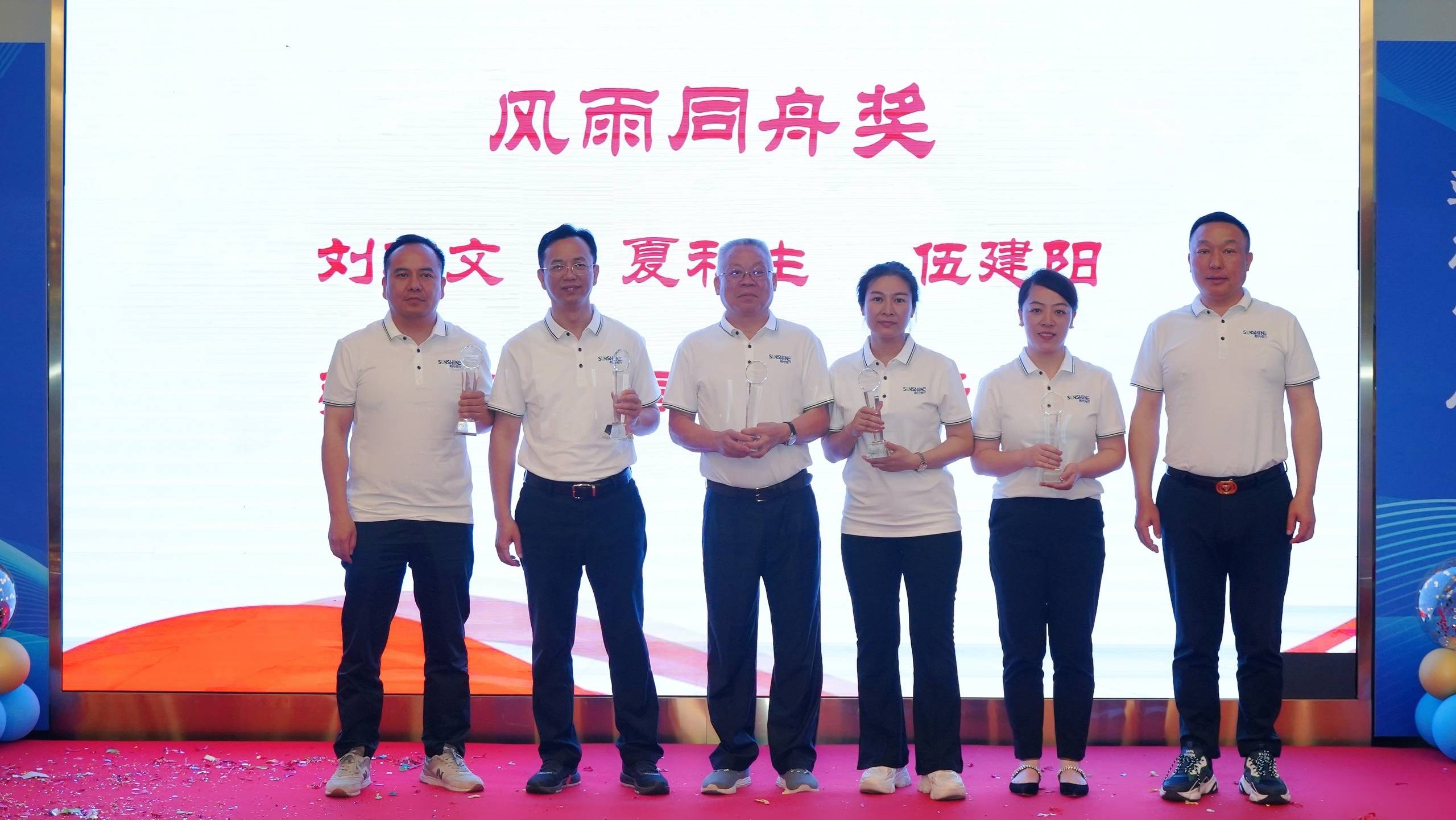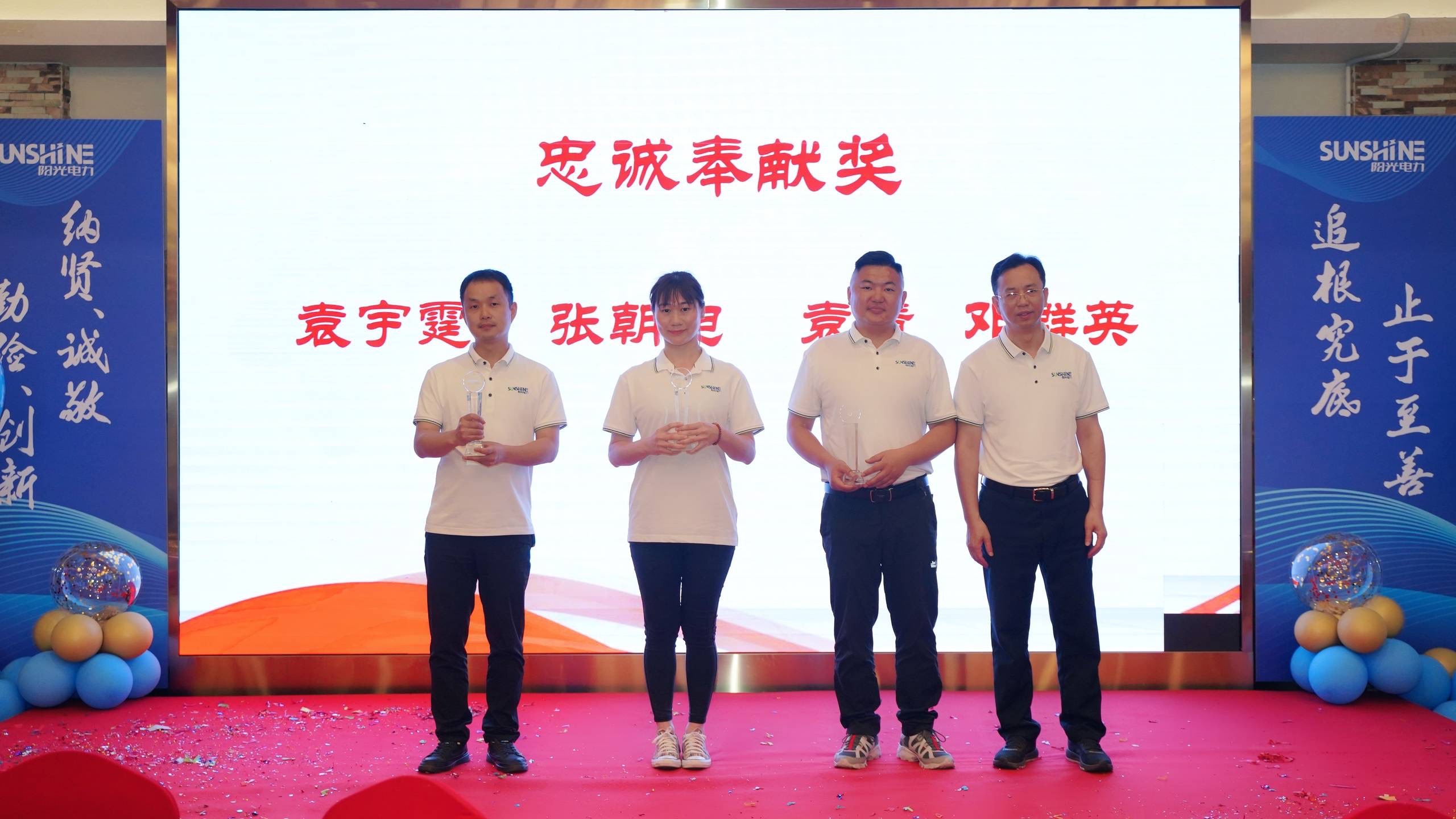 在熱烈的氣氛中,公司為資深員工分別頒發資深員工獎、忠誠奉獻獎、風雨同舟獎。紀念獎杯。與公司共同創業,不離不棄,這份榮譽來之不易,更代表著陽光電力對所有為公司做出突出貢獻的團隊的珍視與感謝。