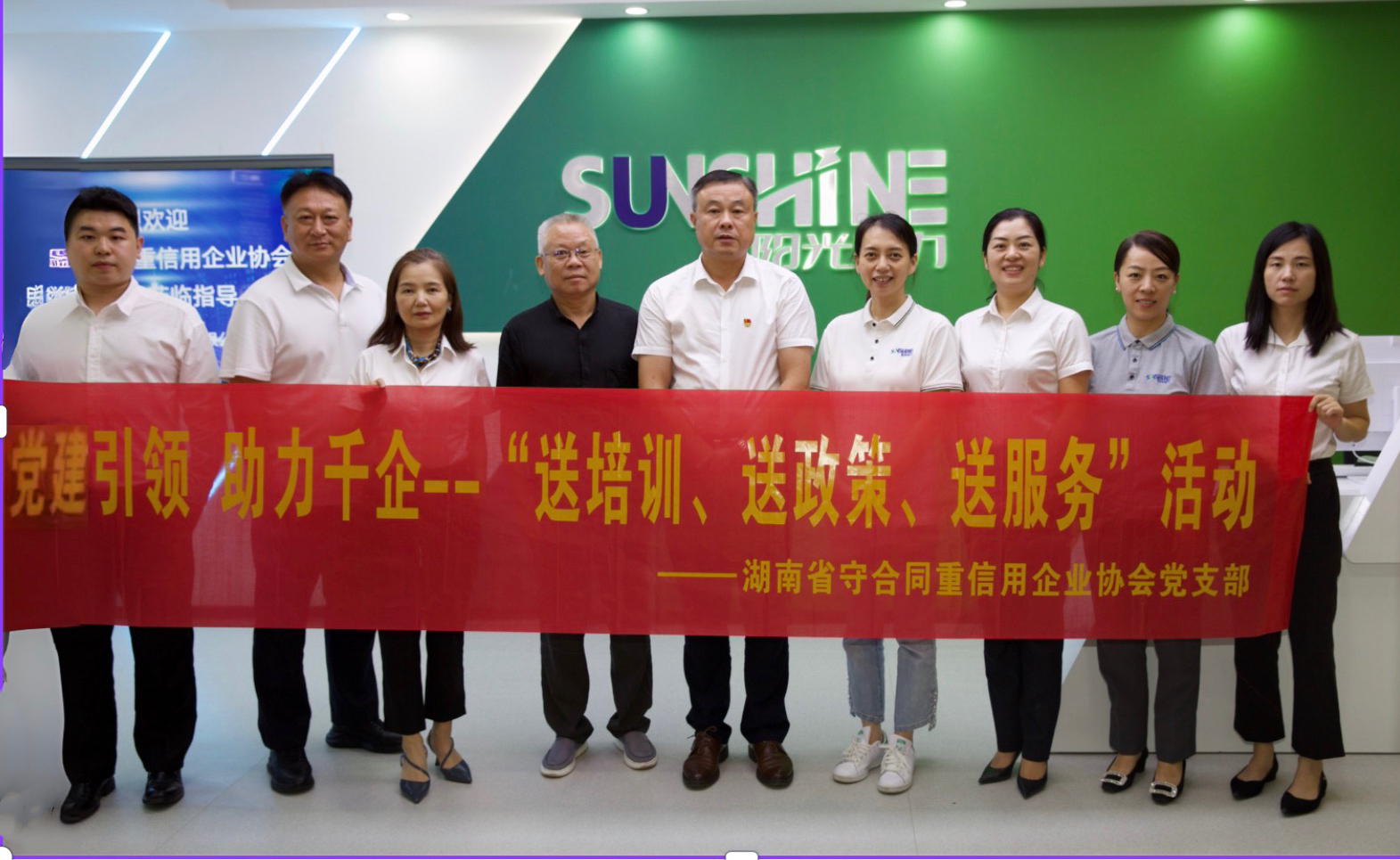 9月20日下午,湖南省守合同重信用企業(yè)協(xié)會(huì)一行蒞臨湖南陽光電力科技有限公司開展“黨建引領(lǐng),助力千企——送培訓(xùn)、送政策、送服務(wù)”活動(dòng)。