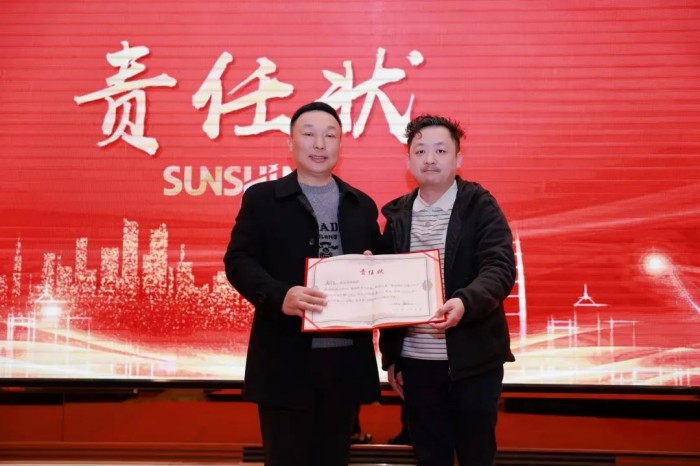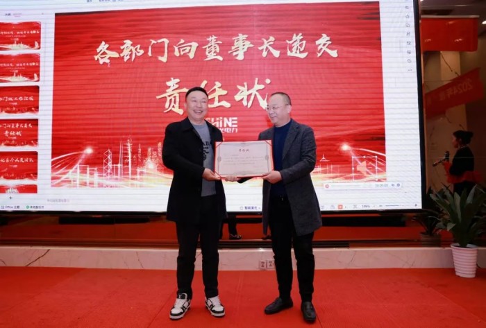 部門匯報結束后,迎來了業務部門負責人遞交責任狀環節。在全體員工的共同見證下,業務部門負責人依次與公司領導簽訂了2025年度責任狀。責任狀的簽訂,明確了各業務部門在新的一年里的工作目標和責任,進一步強化了業務部門負責人的責任意識和擔當精神,也為公司2025年的發展奠定了堅實的基礎。
